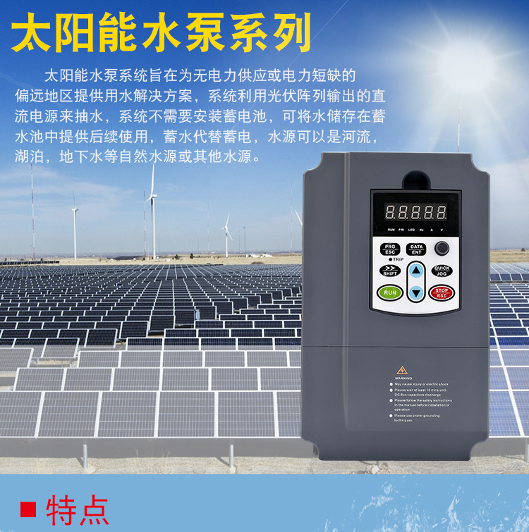 應用行業(yè):廣泛應用于陽光充足、市電短缺的地區(qū),可以解決農(nóng)場灌溉、畜牧養(yǎng)殖、生產(chǎn)生活的用水問題。