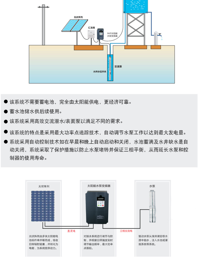 應(yīng)用行業(yè):廣泛應(yīng)用于陽光充足、市電短缺的地區(qū),可以解決農(nóng)場(chǎng)灌溉、畜牧養(yǎng)殖、生產(chǎn)生活的用水問題