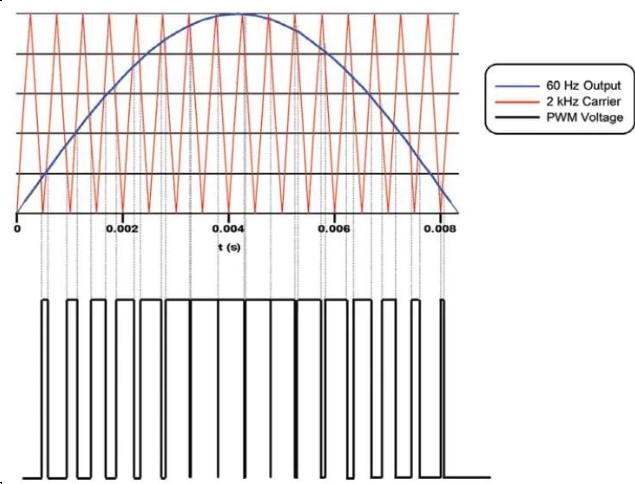 5.脈沖寬度調(diào)制(PWM):一種VFD控制方案,其中通過(guò)使用一組6個(gè)電源開(kāi)關(guān)(通常為I G B T)使用恒定的DC電壓來(lái)重構(gòu)模擬交流電壓波形。有效電壓可以通過(guò)改變固定幅度脈沖的寬度來(lái)控制。這種脈寬調(diào)制方案是有效的,因?yàn)殡姍C(jī)是一個(gè)大電感,不允許電流像電壓一樣脈動(dòng)。正確排序后,PWM以近乎完美的正弦波形輸出電機(jī)電流。