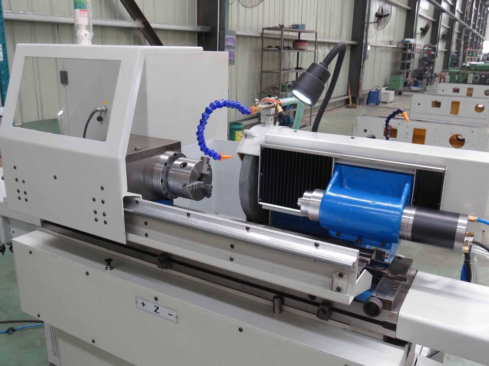 根據(jù)不同的軸桿直徑的大小,主砂輪電動機的轉(zhuǎn)速等于砂輪輸出的轉(zhuǎn)速。磨削力的大小取決于電動機的輸出轉(zhuǎn)矩。在驅(qū)動工件旋轉(zhuǎn)的主軸電動機的高速段,相對于砂輪輸出轉(zhuǎn)速不變,所加工的工件直徑小,磨削進給少,加工大直徑,長軸類工件時,工件旋轉(zhuǎn)的電動機在低速段,砂輪進給量大,砂輪磨削力也在變大,電動機很難再恒轉(zhuǎn)矩/恒速度下運行,速度的變化就產(chǎn)生了如振刀紋/燒糊紋/加工精度等的變化。變頻調(diào)速電動機的無級調(diào)速,恒轉(zhuǎn)矩輸出恰能彌補上述缺陷。