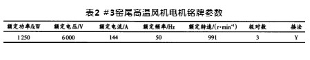 表2#3窯尾高溫風(fēng)機(jī)電機(jī)銘牌參數(shù)