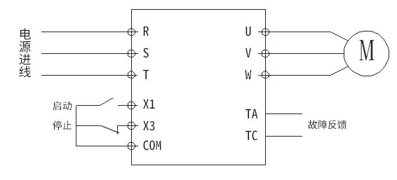 該變頻配套破碎機的方案,已經(jīng)通過了沙場礦場等嚴苛環(huán)境的考驗,目前使用效果優(yōu)異,深得客戶信賴。系統(tǒng)接線如下圖:
