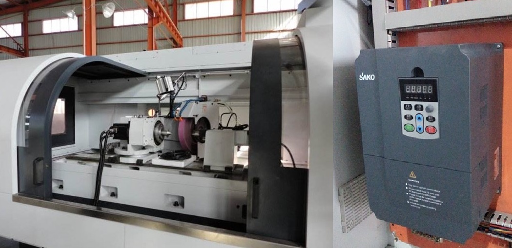 根據(jù)不同的軸桿類直徑的大小,主砂輪電機(jī)的轉(zhuǎn)速等于砂輪輸出的轉(zhuǎn)速。磨削力的大小取決于砂輪電機(jī)的輸出轉(zhuǎn)矩。在驅(qū)動工件旋轉(zhuǎn)的主軸電機(jī)的高速段,相對于砂輪輸出轉(zhuǎn)速不變,所加工的工件直徑小,磨削進(jìn)給少;加工大直徑,長軸類工件時,工件旋轉(zhuǎn)的電機(jī)在低速段,砂輪進(jìn)給量大,砂輪磨削力也在變大,電機(jī)很難在恒轉(zhuǎn)矩/恒速度下運(yùn)行。速度的變化就產(chǎn)生了如振刀紋/燒糊紋/加工精度等的變化。變頻調(diào)速電機(jī)的無級調(diào)速,恒轉(zhuǎn)矩輸出恰能彌補(bǔ)上述缺陷。