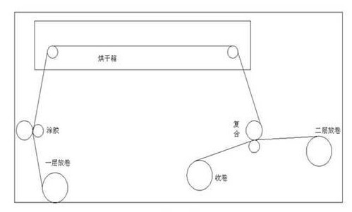 該復(fù)合機是加工塑料薄膜(如薄膜印刷)的重要設(shè)備,如下所示。在該系統(tǒng)中,薄膜卷通過退繞架退繞,然后通過涂膠槽涂膠,進入復(fù)合牽引輥后在復(fù)合控制箱中加熱,然后與另一層薄膜復(fù)合,最后由卷繞電機卷繞。